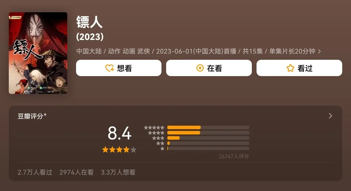 2023年,动漫版《镖人》上线,一举拿下8.4分。