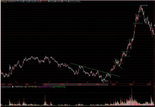 这时要做的就是每涨一定幅度,就做一次震荡形态,让其他人获利的筹码换手。