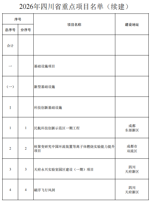 同时发布2026年四川省重点项目名单,共包含304个项目。